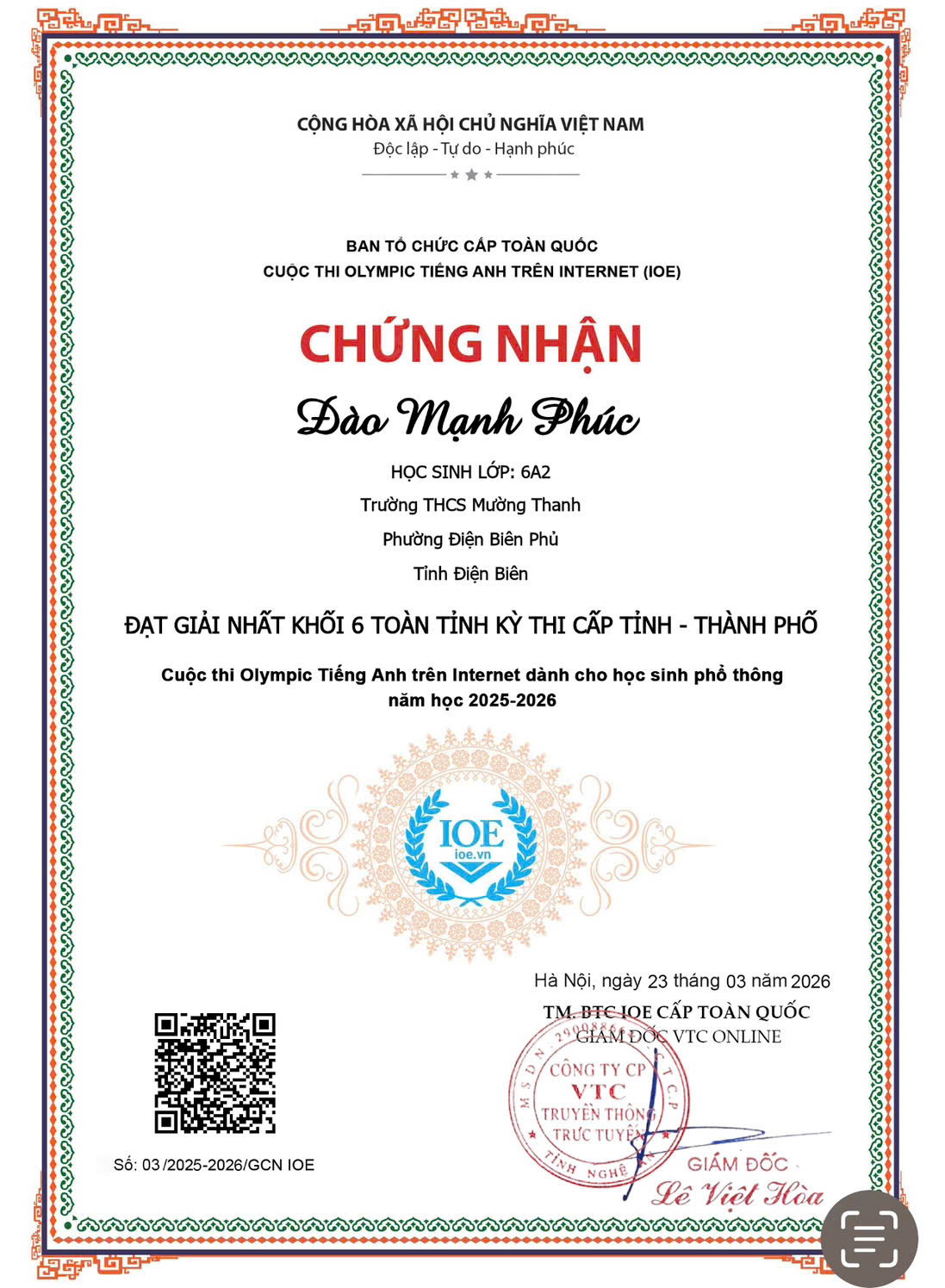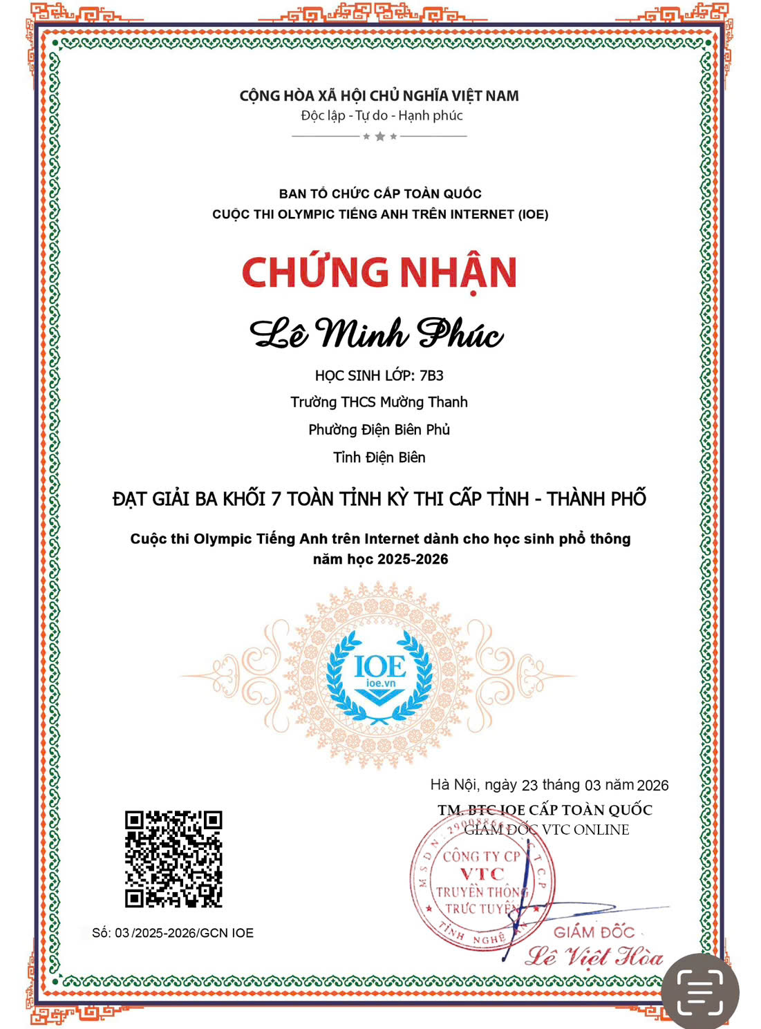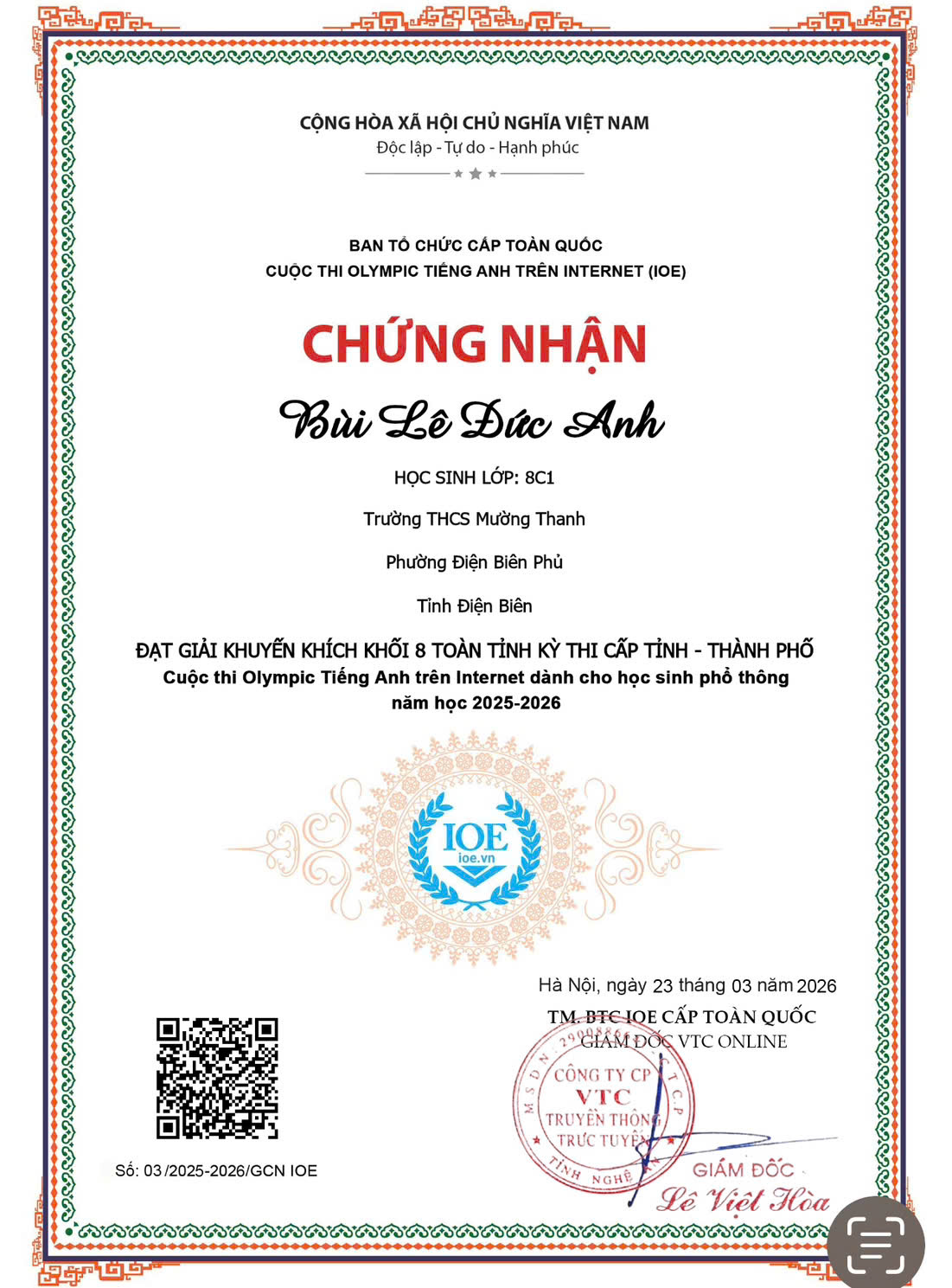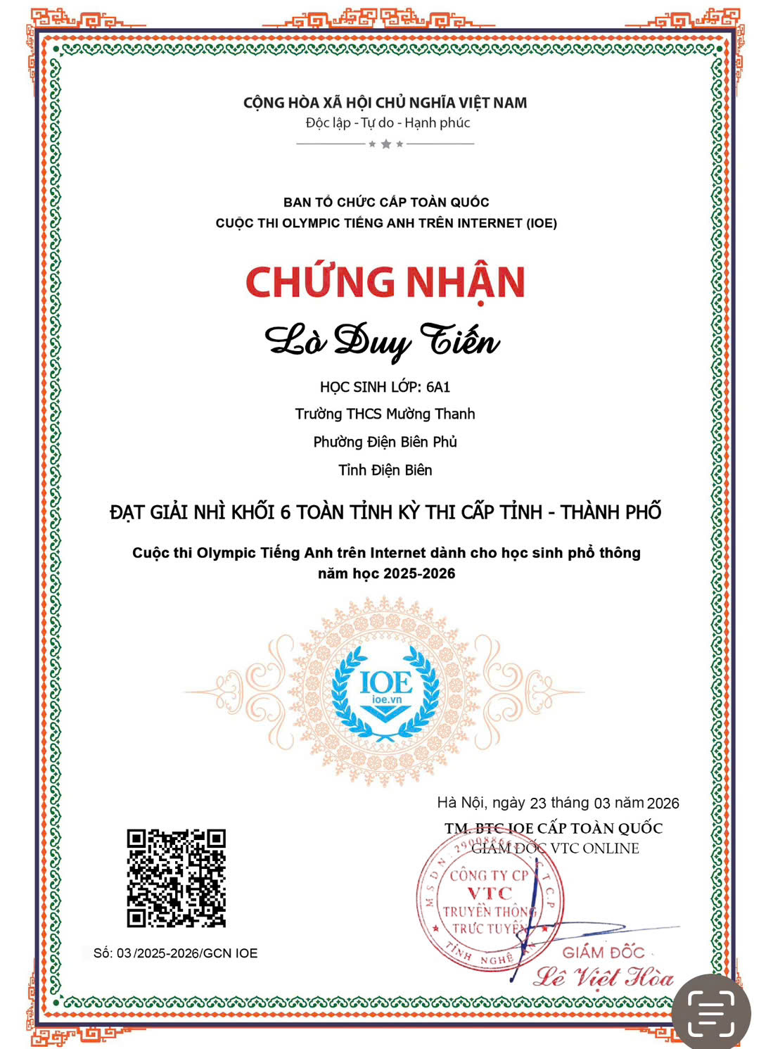 TRƯỜNG THCS MƯỜNG THANH THAM GIA CUỘC THI OLYMPIC TIẾNG ANH TRÊN INTERNET CẤP TỈNH NĂM HỌC 2025-2026